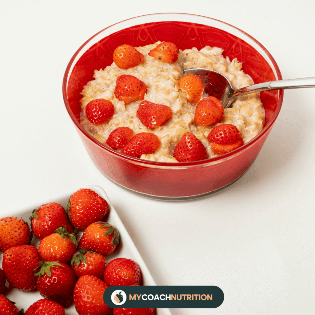 Commence la journée avec ce porridge fraise & rhubarbe, une recette healthy, crémeuse et gourmande parfaite pour le printemps. Facile à préparer, ce petit-déjeuner associe la douceur des flocons d’avoine, l’onctuosité du skyr et le duo acidulé fraise-rhubarbe pour un bol équilibré, riche en fibres et en protéines. Idéal pour un breakfast sain, rassasiant et de saison, ce porridge maison se décline aussi bien chaud que tiède. (2 parts)